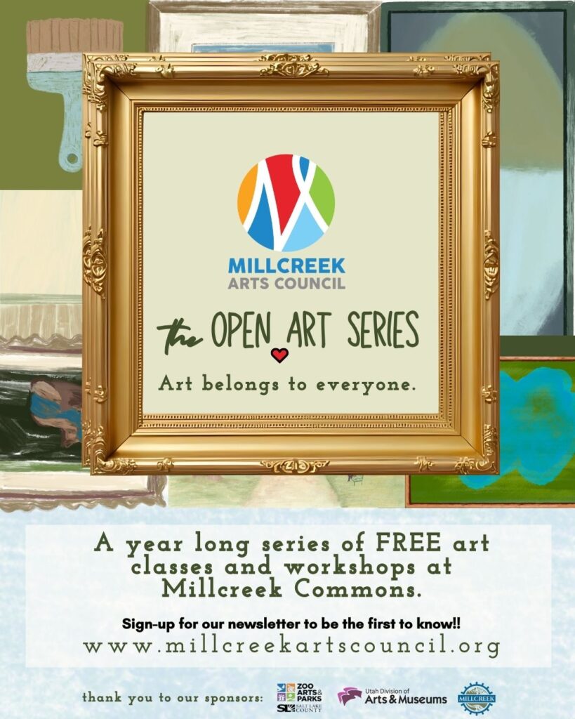 The Millcreek Arts Council is excited to introduce the Open Art Series, a new set of free pop-up art classes offered to the community three to four times throughout the year. Designed to be welcoming and accessible, each one-day class invites participants to explore creativity, learn new techniques, and connect through art. Art belongs to everyone.